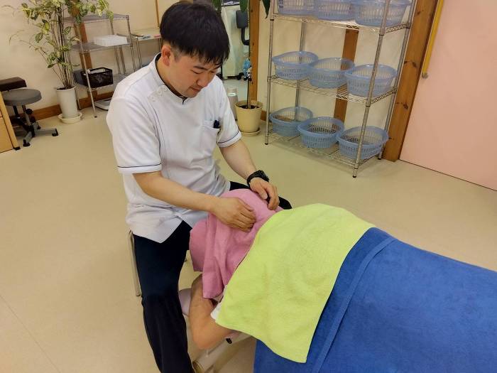 当院では、知識を持ったスタッフが首の後ろから頭部全体までを手で揉みほぐします。
